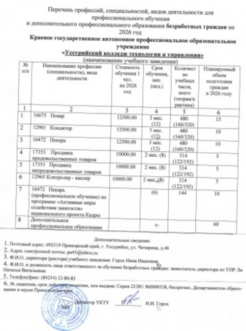 2. Наличие государственной аккредитации и лицензии Департамента образования и науки Приморского края на образовательную деятельность - залог Вашей уверенности в надежности и профессионализме КГА ПОУ "УКТУ".